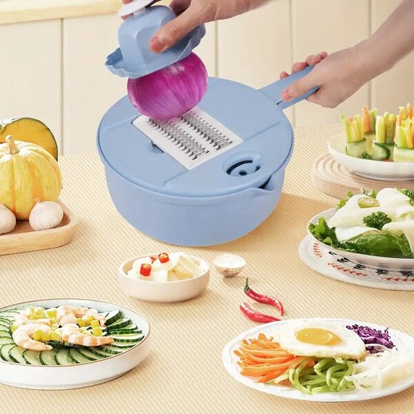 Od oddelenia vajec po krájanie zeleniny, 12-v-1 dizajn zvládne prakticky akúkoľvek výzvu pri príprave jedla. Dostupný v štýlových modrých a ružových farbách, ktoré ladia s vaším kuchynským dekorom.