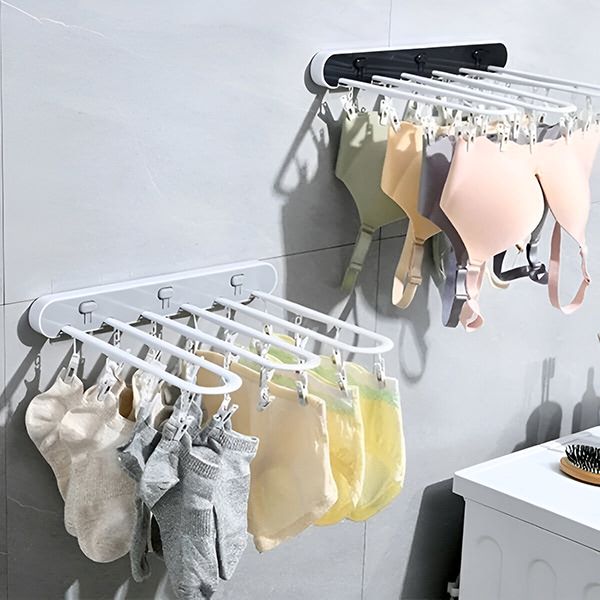 Tento stojan sa rozkladá na sušenie viacerých predmetov a keď sa nepoužíva, zloží sa naplocho k stene, čím udržiava váš priestor uprataný a efektívne využiteľný.